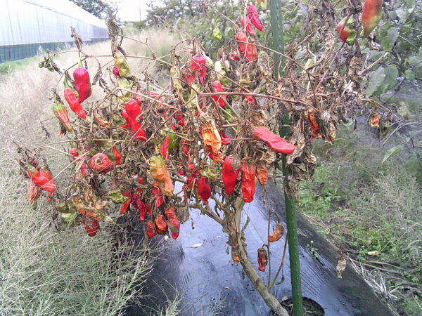 猛暑の中お疲れさまでした。曲がったり、赤くなったり、太ったり収穫されない余生を静かに楽しんでいます。