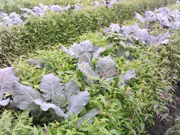 9月に定植した白菜?畝全体が緑に覆われて順調に育ってますね~雑草と共に。
