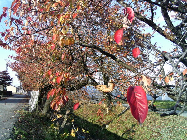 紅葉が見頃の季節ですね。桜並木もきれいに赤く染まっています。