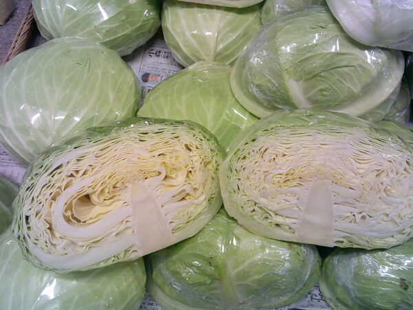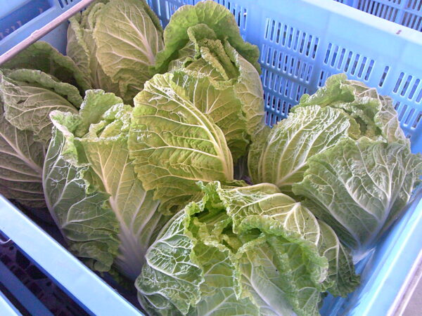 包丁を見つめる健気なキャベツたち。パッカーンされて旅立っていきます。