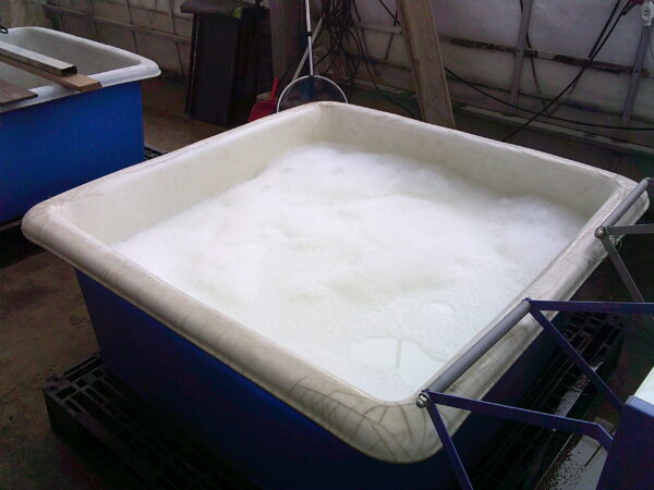 春はまだ先ですが、水稲育苗のための苗箱は一枚ずつ洗浄、消毒しておきます。