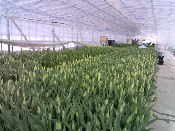 チューリップのハウス栽培は、3月の卒業式シーズンまで続きます。